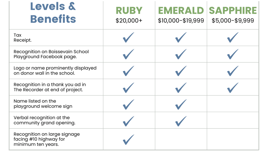 Logos and names of all Playground Partners will be displayed prominently on the donor wall, located along the hallway outside the gymnasium doors at Boissevain school.